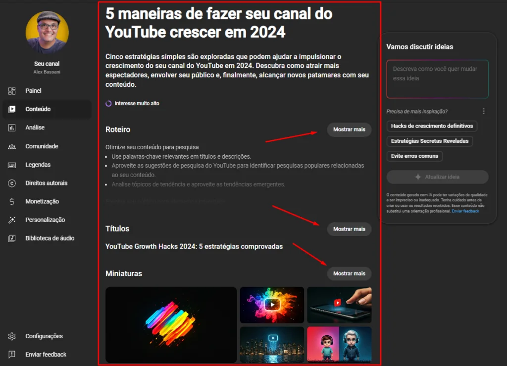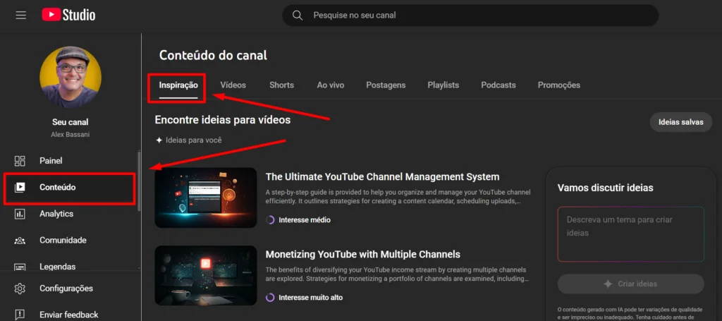 YouTube Studio “Aba Inspiração” – Crie Roteiros e Miniaturas GRÁTIS em Minutos!