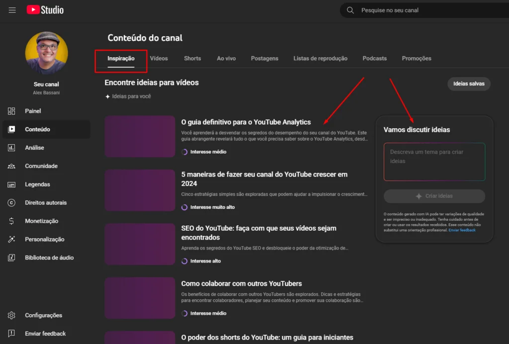Acesse o YouTube Studio, explore a Aba Inspiração e experimente as possibilidades que ela oferece. E se você quiser mais dicas sobre como criar conteúdos incríveis, acompanhe nosso blog para mais insights e estratégias exclusivas.